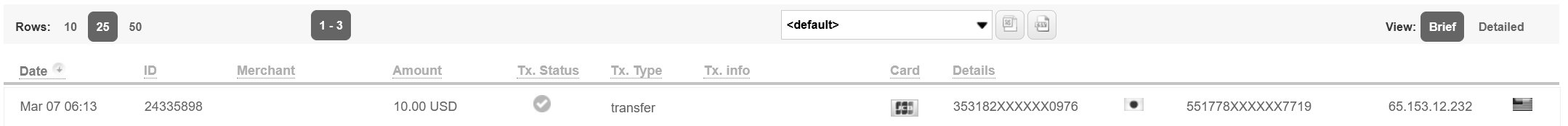 Позволяет отобразить все транзакции для конкретного торговца или для нескольких торговцев. |