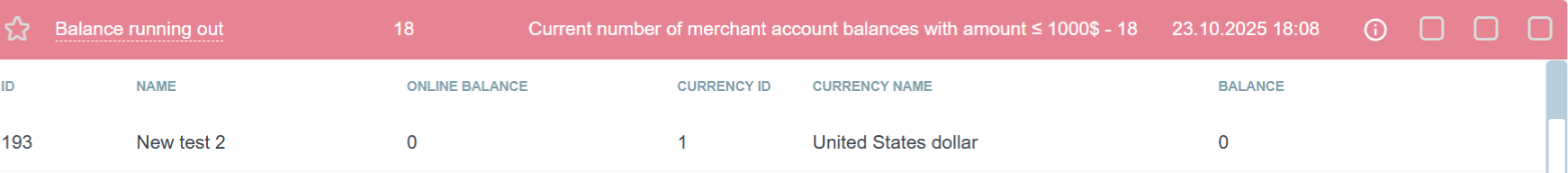 The screen is located in “Tools” – “Monitoring” section. This screen displays information about various errors that usually require quick response, as well as the options to subscribe for notifications about any errors via Telegram, Email or Push notification. Phone number and e-mail address are taken from the personal account (Merchant or its employee account).